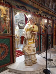 Γι’ αυτό, προ της απολύσεως, συνεχάρη τον προϊστάμενο του Ιερού Ναού, π. Σπυρίδωνα Σταμούλη, τον προηγούμενο εφημέριο π. Κωνσταντίνο Λαφατζή αλλά και όλο το Εκκλησιαστικό Συμβούλιο του Ιερού Ναού, για το πλούσιο έργο που επιτελούν, ενώ παράλληλα ευχαρίστησε τον Επίσκοπο κ. Ισαάκ που με τη παρουσία του λάμπρυνε μια από τις ιστορικότερες λατρευτικές στιγμές του Ιερού Ναού και του τόπου.