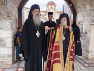 Με αδελφική αγάπη και ευλογία ο Σεβασμιώτατος Ποιμενάρχης μας κ. Χαρίτων, αφού τον καλωσόρισε στην επαρχία μας, μετέβησαν μαζί την Τετάρτη 28 Μαΐου στην πανηγυρίζουσα Ιερά Μονή της Αναλήψεως του Σωτήρος στη Συκέα Ελασσόνας.