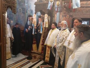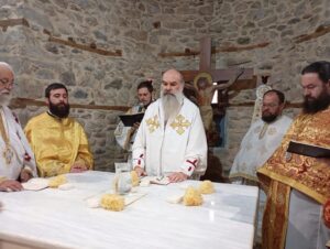 Προ της ενάρξεως της Θείας Λειτουργίας, ο Μητροπολίτης Ελασσώνος κ. Χαρίτων τέλεσε την ακολουθία «ἐπί διασαλεύσει Ἁγίας Τραπέζης», μια ακολουθία που τελείται έπειτα από την ολοκλήρωση ανακαινιστικών εργασιών εξωραϊσμού του Ιερού Ναού, της Αγίας Τραπέζης και του Ιερού Βήματος.