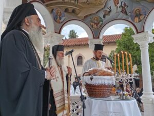 Προ της απολύσεως, ο Σεβασμ. Μητροπολίτης κ. Χαρίτων ευχαρίστησε το πλήθος των πιστών που προσήλθαν για να λειτουργηθούν στην μακρινή αυτή Ιερά Μονή, ενώ ευχαρίστησε και όλους εκείνους που έβαλαν το δικό τους λιθαράκι, ο καθένας με τον δικό του τρόπο, στα έργα ανασύστασης της Ιεράς Μονής. Βέβαια, όπως τόνισε, όλος αυτός ο κόπος θα ήταν μάταιος αν δεν υπήρχε ο π. Νεκτάριος για να δώσει ζωντάνια σε όλα αυτά τα έργα. Με θερμά λόγια, καλωσόρισε και επίσημα τον π. Νεκτάριο στην πνευματική οικογένεια της Μητροπόλεως και του ευχήθηκε καλή, δημιουργική και καρποφόρα διακονία στην Ιερά Μονή, όπως επίσης ευχαρίστησε τον Επίσκοπο κ. Ισαάκ για την παρουσία του.