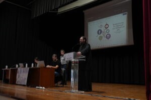 Πρώτος ο κ. Σιώμος ανέπτυξε τους κινδύνους της απρόσωπης επικοινωνίας και την απόσταση των νέων από τους γονείς τους, που αφήνει χώρο για κάθε είδους παραβατικά άτομα. Επέμεινε δε στην καλλιέργεια της ατομικής ευθύνης του κάθε νέου για τη ζωή και τις επιλογές του.